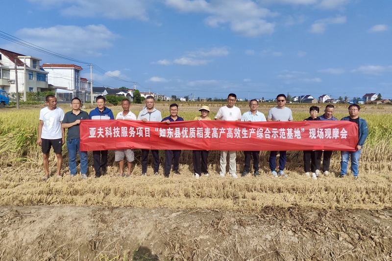 10月7日,由南通市农学会组织有关专家,对江苏沿江地区农业科学研究所承担实施的2025年度亚夫科技服务项目“如东县优质稻麦高产高效生产综合示范基地”“大(元)麦-稻”种植模式下水稻示范方典型田块进行实收测产。