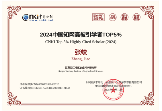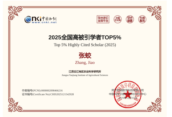 2025年12月中旬,中国知网下属的中国科学文献计量评价研究中心(出版智库)正式发布了“2025全国高被引学者”榜单。此次评选遵循“聚焦高影响力成果”及“贡献度量化”的总体原则,统计范围为2015-2024年中国知网收录的期刊论文、会议论文,且论文引证标准化指数(PCSI)高于1.65。在严格的评选标准下,我所盐土农业学科团队张蛟助理研究员凭借在其研究领域发表的多篇高被引论文,成功从众多学者中脱颖而出,连续两年跻身“全国高被引学者TOP5%”行列,彰显了其团队在盐碱地土壤资源开发利用领域的深厚学术积淀和广泛影响力,同时也是学术界对其个人学术成就的高度认可。