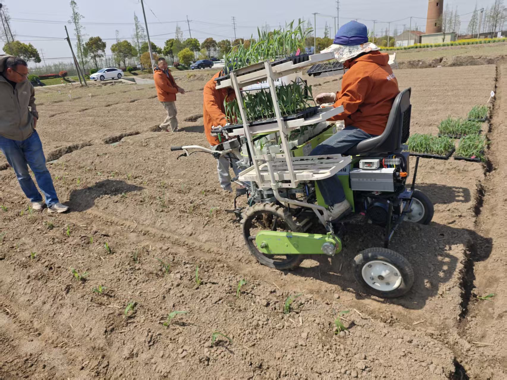 团队重点开展了鲜食玉米乳苗机械化移栽实操演示,围绕“苏玉糯602”和“苏科糯1902”两个主推品种,结合其生长特性制订配套移栽技术,直观展现机械化移栽的实操流程与应用效果。结合现场作业实景,团队成员向参会人员详细讲解了鲜食玉米乳苗移栽核心技术要点:一是确定“2叶1心”为最佳移栽时期,为移栽成活率奠定基础;二是强调移栽后需重点防控地老虎、螟虫等地下害虫,规避虫害影响幼苗生长;三是系统普及移栽后鲜食玉米绿色高效配套技术,包括缓释肥一次性施用、有机肥替代、绿色综合防控等内容,全方位为参会人员提供技术指导,确保技术落地见效。